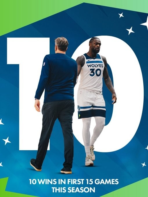11月20日讯 NBA常规赛,森林狼120-109力克奇才。这是森林狼赛季第15场比赛,前15战他们取得10场胜利,森林狼官方数据统计,这是在过去20年第三次出现前15场10胜,其