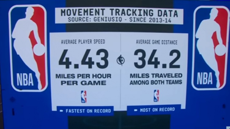 备注:数据来源自GENIUSIO - 自2013-14赛季起球员每场平均奔跑速度4.43英里/小时、球队场均跑动34.2英里