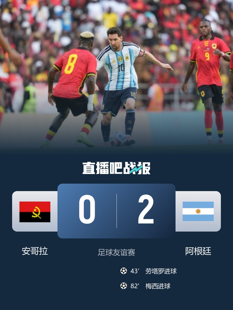 今天凌晨进行的一场友谊赛,阿根廷客场2-0战胜安哥拉,梅西和劳塔罗相互传射。